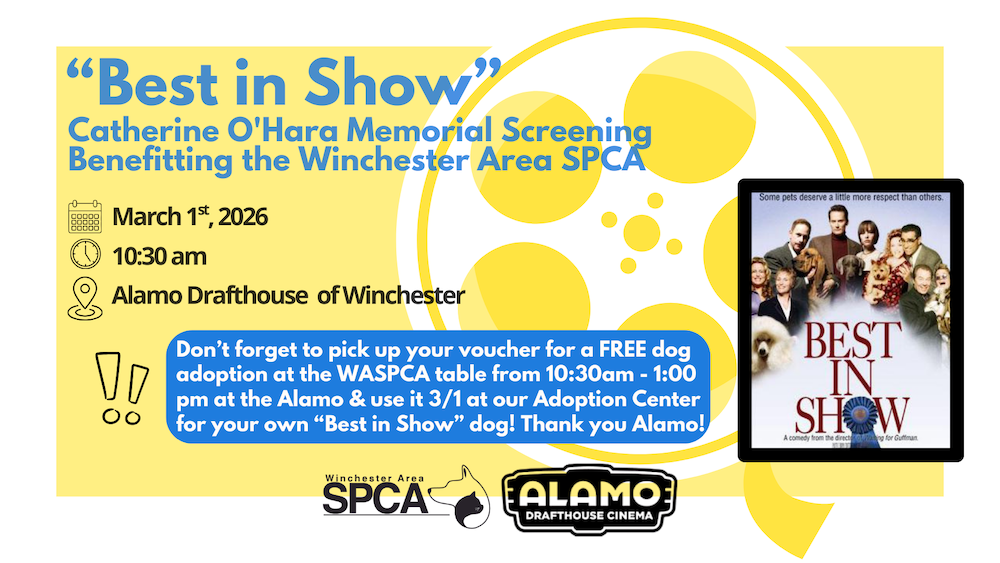 Stop by the WASPCA table at the special showing of Best in Show on March 1st from 10:30AM to 1:00PM to pick up your voucher.