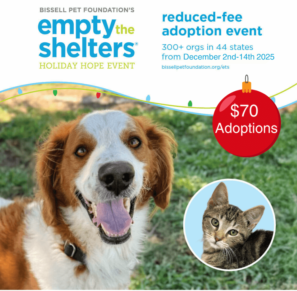 As our nation’s shelters are overburdened due to increased owner surrenders and longer stays for pets, BISSELL Pet Foundation is prompting a national call for adoption with its “Empty the Shelters” Holiday Hope reduced-fee adoption event.