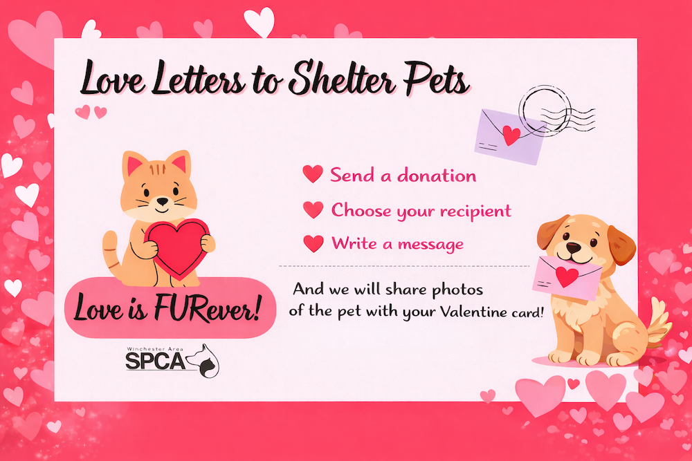 This Valentine’s season, send a little love to a shelter pet who could use an extra smile! From January 31st–February 14th, you can send a Valentine to one of our adoptable pets and help make their day extra special.